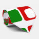 This necktie has a Christmas mid-century modern design of repeating orange rectangles with white rectangles inside alternating with teal rectangles.