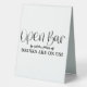 Open Bar Drinks Are On Us Table Tent Sign. A fun, modern, typography sign for your wedding or engagement table.