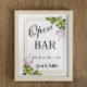 Open bar wedding sign 8x10- pink floral design with calligraphy font. Use the vertical frame and enjoy the party!