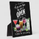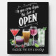 As you were hopin', this bar is open. Illustrated Open Bar sign ready to display with easel backing. Great for weddings or any function with an open bar. Gently reminds people to tip the bartender.