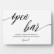 Add a playful, polished touch to your reception with the Open Bar Wedding Sign Tabletop Plaque – a stylish way to let guests know the drinks are flowing! With modern typography and a clean, elegant layout, this sign strikes the perfect balance between fun and sophistication.