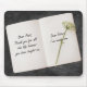 Open scrapbook with Queen Anne's Lace and an inspirational quote on black leather.