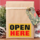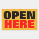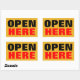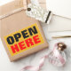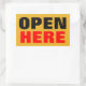 OPEN HERE RECTANGULAR STICKER