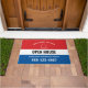 Welcome potential clients to your open house event with this customisable open house doormat. The large lettering makes it easy to read. The easy to customise template makes it perfect for real estate agents to make a professional first impression. Designed in red white and blue.
