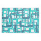 This pillowcase has a mid-century modern design of open rectangles in blue over open rectangles in robin's egg blue.