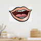 Bring a bold statement to any wall with this striking open mouth cartoon graphic poster. Perfect for adding a fun, vocal art touch to music rooms, speech therapy offices, or bedrooms. This high-quality illustration features stylized pink lips, white teeth, and a detailed tongue, captured in a clean vector drawing style. Ideal for lovers of unique design elements and expressive artwork. Available in various sizes, this poster is an attention-grabbing conversation starter and an essential piece of expressive human anatomy artwork. Decorate your space with this expressive illustration of talking or singing.