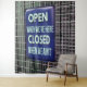 This is a fun open and closed sign wrapped into one, with an artistic flair.