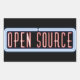 Red white and blue neon sign that says open source. Glowing letters, computer related, programming, geeky, nerdy.