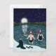 👉 Put a smile on a face with this wild swimming Christmas holiday postcard! Open water swimmers are in a lake in winter with Santa hats on. It’s night time and the moon and stars are reflected in the water.