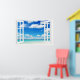 Beautiful watercolor brush rendition of the crystal blue water and equally brilliant blue skies out the open window at your beach vacation villa.