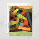 A fine art postcard with a watercolor and ink painting by Paul Klee (1879-1940) titled Geöffneter Berg - Opened Mountain (1914). He was a German artist born in Switzerland and is considered a master of colour theory. A geometric abstract of light and cylinders pointing in different directions.
