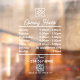 A white script opening business hours window decal and window cling featuring business logo, QR Code, your custom social media icons and contact details. A personalised shop hours window cling perfect for shop windows and front door signs. Perfect for a business shop owner who would like to notify their customers about its opening hours.