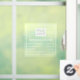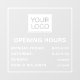 Opening hours window cling featuring white or custom colour text on a transparent background and a custom logo template.