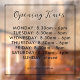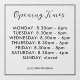 A simple custom business opening hours vinyl window cling decal sign template in a modern minimalist style. This professional template allows you to easily design a custom opening times list for your store, salon, restaurant, cafe or any other business.