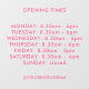 A simple custom business opening hours vinyl window cling decal sign template in a modern minimalist style. This professional template allows you to easily design a custom opening times list for your store, salon, restaurant, cafe or any other business.