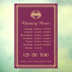 Display your business hours to clients and customers with this stylish window cling. A vintage-inspired design featuring classic typography and a simple art deco border. This professional template is personalised with your company logo, opening times, telephone number, and website. It offers fully customisable text to fit your business brand. You can also change the background colour by using the design editor tool. This adaptable design is ideal for a variety of establishments, stores, offices or services, including restaurants, cafes, salons, boutiques, dry cleaning services, and more! Printed colours: deep pink plum and gold colour. If you’d like your logo to coordinate with the gold type colour, the Hex colour code is #DEBE79