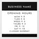 Customize this modern black and white script window cling sign for the perfect sign. Add your business name and business opening hours. All the modern minimalistic typography is editable. The clean clear lines create a stylish professional look. This black and white window cling sign is simple and versatile.
