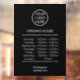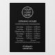 A simple custom logo business opening hours vinyl window cling decal sign template in a modern minimalist style on a black background. This versatile template allows you to easily design a custom opening times list for your store, salon, restaurant, cafe or any other business.