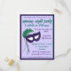 Design features an original marker illustration of a theatrical masquerade mask with a green feather and green and purple ribbons. Great for an opening night party, gala, masquerade ball, or Mardi Gras celebration. Simply personalise with your event information.