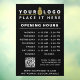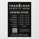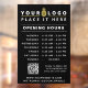 Are you looking for an easy way to show your salon, shop or business opening hours? Check out this White Business Logo Opening Hours and QR code Window Cling. You can add your all your details by filling in the template fields. You can modify each text block and even change the fonts style by using the design tool. Happy Customising!