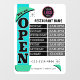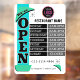 A simple custom business opening hours vinyl window cling decal sign template in a modern minimalist style on a black background. This versatile template allows you to easily design a custom opening times list for your store, salon, restaurant, cafe or any other business. Need help? Feel free to contact me using the message button. I am happy to help with your personalisation, additional items or custom orders.
