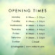 A simple custom business opening hours window cling decal sign template in a modern minimalist style on a transparent background. This versatile template allows you to easily design a custom opening times list for your store, salon, restaurant, cafe or any other business.