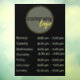 Modern template for you to make your own opening times and opening hours design with logo. The design features a placeholder logo at the top, while underneath there was custom text for you to edit with the opening hours of your small business, retail site, office space. Each day is listed - Monday, Tuesday, Wednesday, Thursday, Friday, Saturday and Sunday - on one side. On the other is the hours so customers know when you are open for business. Each day is listed in case it is different for each one, and you can even write closed on certain days if appropriate. The text is in a white colour and along with the company logo set against a black background for a monochromatic modern and easy to read design. Use this template to create your own custom professional looking business logo branded decor!