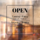 This cling is designed to help businesses make their opening hours known to potential customers. It's an easy way for customers to quickly find out what time the business is open and when they can expect to find it open.