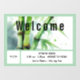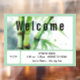 Operning hours logo Welcome Door / Window Cling, with a fresh modern style watercolour splash dip style picture of bamboo stems in green and white theme ai generated image. Fully customizable, make it yours, It has place for your company logo, all text is changeable, background bamboo can be changed, if you need help please feel free to message me im happy to help.