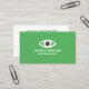Modern and classy, green business card or profile card featuring an eye logo. Customisable text areas for, name, title or clinic, phone number, address, e-mail etc. White back. Elegant and contemporary physician business card for opthomologists, optometrists and gastric surgeons or anyone working with eyes or vision. For custom requests or help with customising please use the store contact link above.