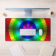 LOVE this desk mat! It's large! It fits across my desk. No need for a small mouse pad now! Color and print are excellent. Quality seems to be excellent too. Delivery was about 3 days sooner than expected. I think this is one of my favorite Zazzle products! Excellent. The color is vibrant and true to what I expected.