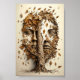 Optical Illusion Tree Faces With Leaves Blowing Poster