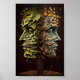 Optical Illusion Tree Faces With Leaves Blowing Poster