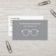 Optometrist business card appointment design template in a modern style with an eyeglass frame on the front and Optometry information on the reverse side including an appointment reminder template created for an Optician, eyewear store, or Ophthalmologist.