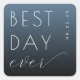 This wedding sticker features a modern, minimalistic design with a gradient blue background transitioning from light to dark. The phrase "BEST DAY ever" is prominently displayed in bold sans-serif and elegant cursive fonts, creating a striking contrast that emphasizes celebration and joy. The layout is simple yet sophisticated, with ample negative space enhancing the visual appeal. Perfect for commemorating your special day, this sticker combines contemporary style with an optimistic tone, making it ideal for capturing the essence of your wedding celebration.