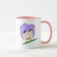 Decorative and playful cartoonish drawn female face. Optimistic and observant appearance, with purple hair.