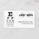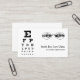 A custom unique design for any optometrist or ophthalmologist in the eye care business of ophthalmology and optometry. It features the traditional eye chart and someone looking through eye glasses. This design is perfect for an eye care clinic.