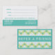 Optometry Referral Business Card. Custom referral business card with a referral promotion to reward your customers for referring their friends. Design has a modern geometric pattern and colour scheme. Please contact me for additional colours. Great for marketing your optometry office and to increase your client list.Enter in your own promotion, disclaimers and company information. Perfect for an optometrist, ophthalmologist, eye doctor, or eye glasses and contact shop.