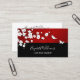 The top portion of this feminine business card features pretty white cherry blossoms on a shimmering red background. The bottom portion features a black text field with a custom name and profession in an elegant handwritten font.