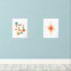 Add a burst of colour to your walls with this fabulous mid century modern art set. The first design features two shades of orange, turquoise, cream, and black geometric squares and the second design features a coordinating orange atomic starburst.