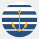 Orange anchor stickers with blue and white stripes. Cute maritime envelope sealers / nautical labels for beach wedding or baby shower invitations. Personalizable with monogram name initials.