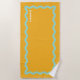 An on-trend take on the wavy line frame in aqua blue on a juicy orange background with one simple line of editable text for easy customisation with a name or event title.