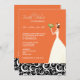An elegant bridal shower invitation for the modern bride featuring a bride with flowers on a coloured background. Available in alternate colours. Please contact us if you are looking for another colour combination. Matching thank you cards, favours and postage also available.