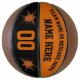 Orange and Black Custom Basketball Personalised with YOUR TEXT and COLORS. Full Size Personalised Basketball is shown or Choose the Mini Basketball Ball. You, or Designer Linda: 239-949-9090 can CHANGE the Orange and Black Background and Text Colours. You can Delete any text or the cool dusty orange star bursts.