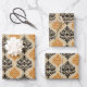 Orange and Black Damask Skull Wrapping Paper Sheet