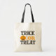 This tote bag is designed to make your trick-or-treating experience stand out. Featuring the classic words "Trick or Treat" boldly displayed on both sides in striking black and orange, it's an unmistakable symbol of Halloween spirit.