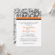 This classy invitation features black floral print design patterns and a touch of orange with a bar that runs across the top on the front. This beautiful and elegant wedding invitation is great for weddings with orange, white, and black colours, or during the holidays. Look for matching RSVP in my shop!