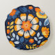 Orange and Blue Bold Retro Floral Illustration Round Cushion