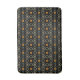 An intricate abstract, modern design featuring orange and blue knots and chains in a vertical pattern over a black background. This stylish design is based on Celtic knots and will give a touch of geometric elegance to your home décor.