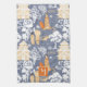 Orange and Blue Chinoiserie Pagodas Monogram Tea Towel